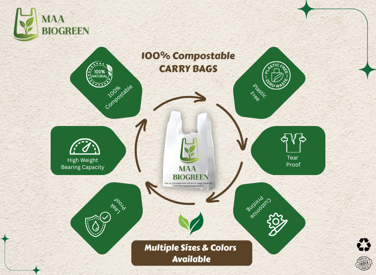 Established with a vision to promote responsible living, Maa Bio Green produces a wide range of eco-conscious carry bags using cutting-edge biodegradable materials that meet global environmental standards. Our products are ideal for retail, grocery, hospitality, and industrial use, offering strength, durability, and 100% biodegradability.